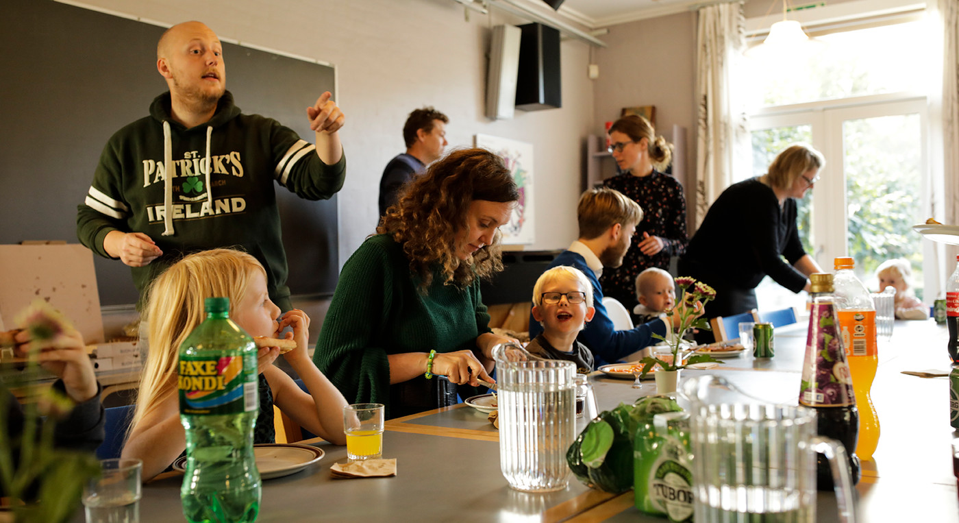 Ved vores familiekirke i Kirkeladen er der højt til loftet, masser af glade børn og voksne i alle aldre, dejlig aftensmad som vores frivillige står for at lave til os, sjove kreative aktiviteter, festlig musik og tid til hygge og snak.